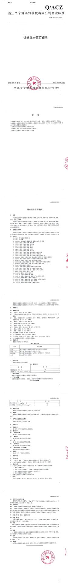 • 調(diào)味混合蔬菜罐頭企業(yè)標(biāo)準(zhǔn)