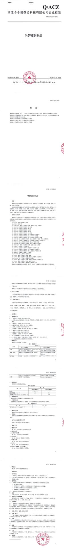 • 竹筍罐頭制品企業(yè)標(biāo)準(zhǔn)