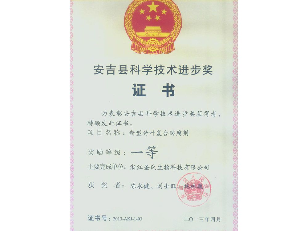 • 縣科技進(jìn)步獎(jiǎng)證書