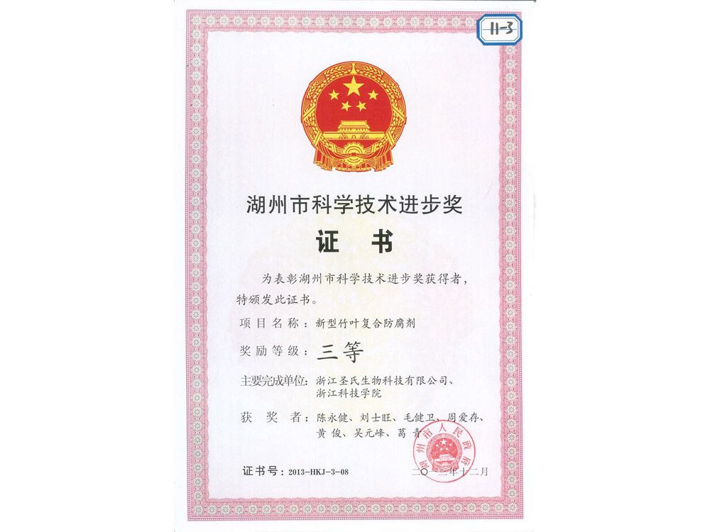• 湖州市科學(xué)技術(shù)進(jìn)步獎(jiǎng)